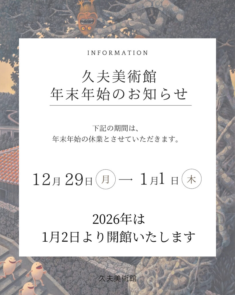月火は通常休館日となりますので、2025.12/29〜2026.1/1までは休館日となり、2026年は1/2から開館致しますのでお休み中お時間御座いましたら是非この機会にご来館下さい😊